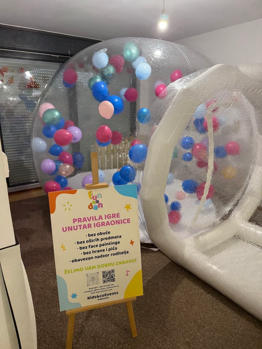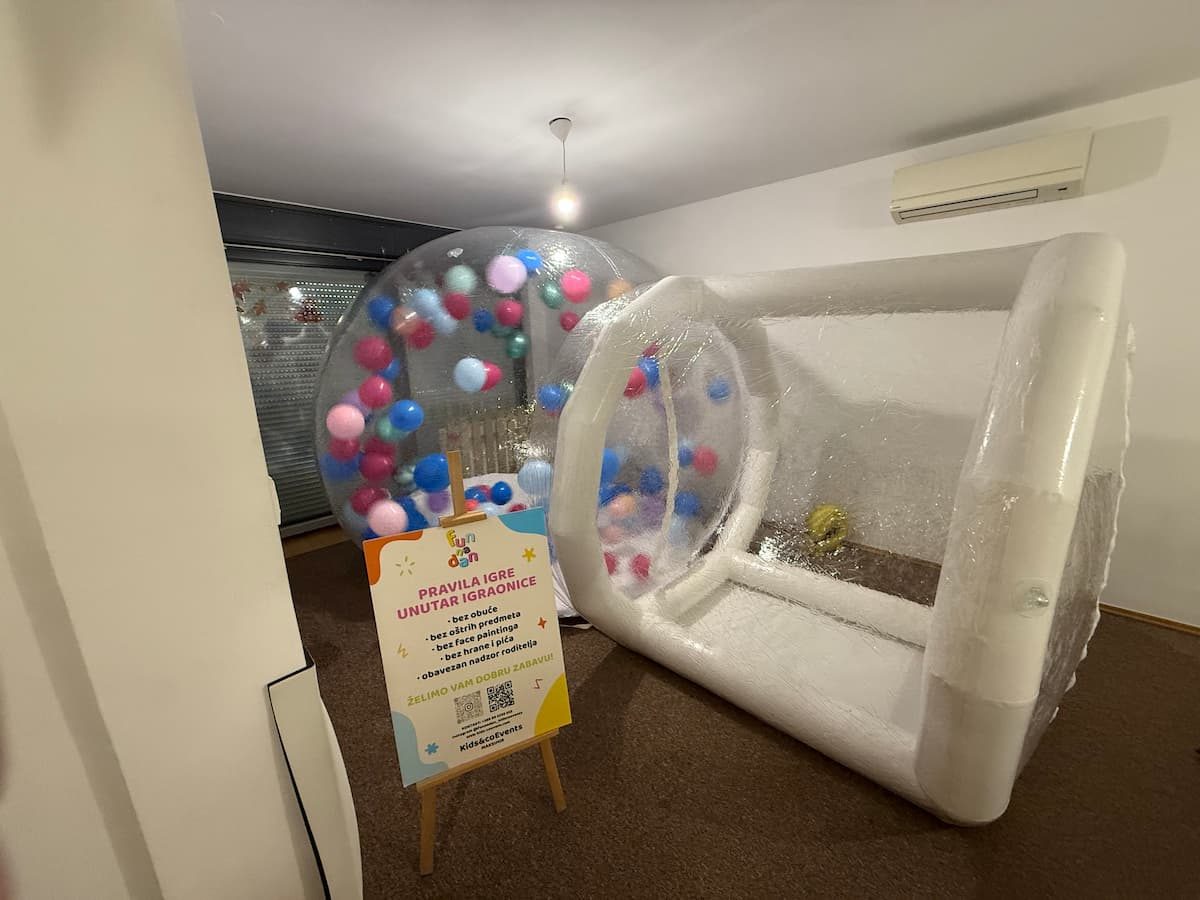 Manja inacica najveceg hita za partye trenutno. Zauzima manje mjesta nego klasican bubble house te je tako idealan za manje prostore kao i za unutarnje zabave. Dimenzije su mu duzina 4 m, sirina 2.5 m i visina 1.8 metara.