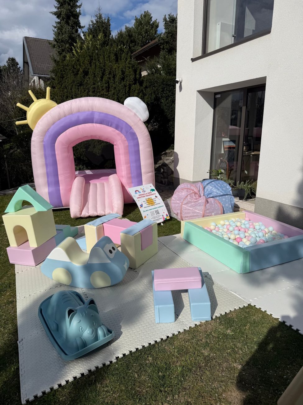 Njegov atraktivan izgled oduševljava mališane čim ga ugledaju, a roditeljima pruža mir jer djeca ostaju okupirana i sretna. Dvorac se brzo postavlja i uklanja, a može se koristiti u dvorištima ili većim zatvorenim prostorima – gdje god želite unijeti dozu veselja i energije u svoj događaj.